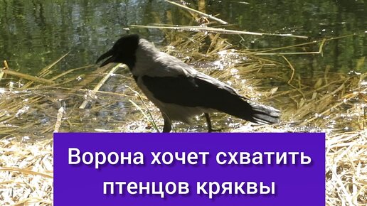 Ворона хочет схватить птенчиков кряквы