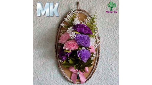Панно 3д на стену своими руками Картон и хозяйственный шнур Цветы из лент\Master diy