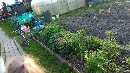 Высадили последние цветы с правнучкой. Вечер в деревне.