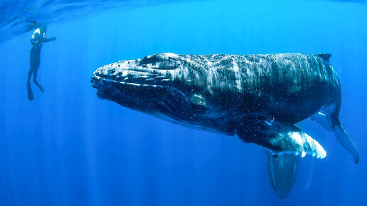 Огромный кит накрыл девушку плавником, чтобы спасти от акулы