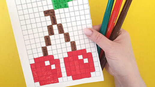 Как нарисовать вишню. Простые рисунки по клеточкам.