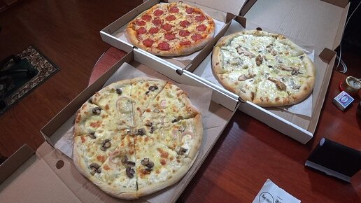 Комбо 3 ПИЦЦЫ. Жульен, Пепперони, Сливочно-грибная. Наелись от пуза!!!