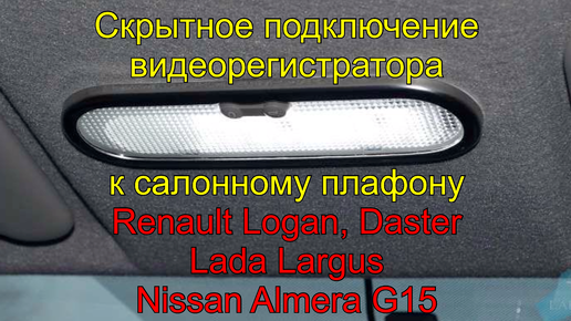 Скрытное подключение видеорегистратора к салонному плафону Daster Logan Largus Almera G15 Sandero