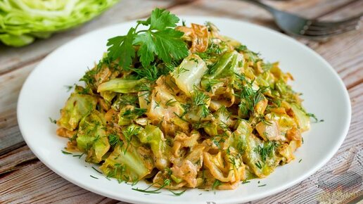 Попробуйте в сезон ранних овощей! Жареная молодая капуста со сметаной.