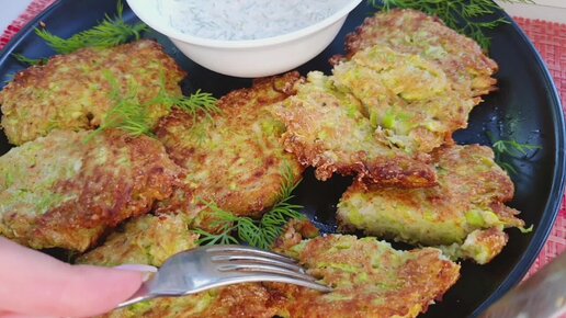 Нежные кабачковые оладьи с белым чесночный соусом. Вкусно и просто