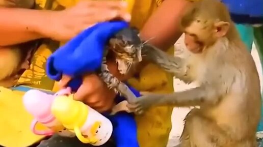 Спасение котенка, или животные никогда не бросят друг друга