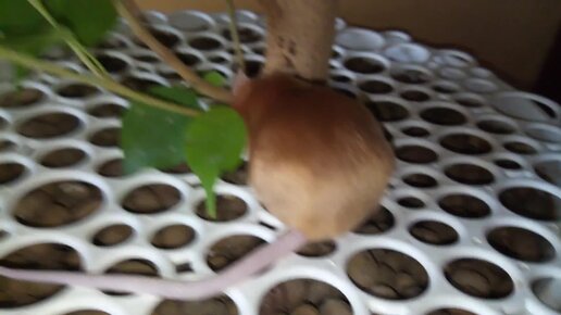 Ручная золотая сатиновая мышка в горшке с фикусом
