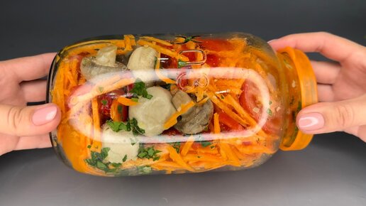Просто складываю овощи с грибами в банку и убираю в холодильник (вкусная закуска от которой невозможно оторваться)