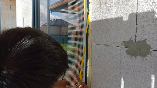 Как приклеить элемент примыкания с сеткой на оконный блок, как в СФТК Мокрый Фасад создать тёплую четверть по периметру оконного блока