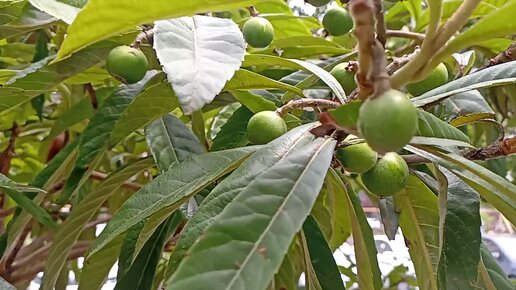 Кустовая плетистая роза, банановые листья, мушмула в мае. Обычный Сочинский дворик.