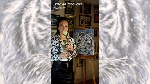 БЕЛЫЙ ТИГР // Описание картины "Белый тигр" холст, акрил, 50-60 см, 2019 г // художник Наталья Резанова