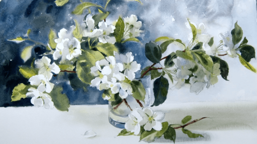 Цветущая веточка яблони акварелью - мастер-класс по живописи