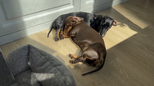Маленькие рыбки растаяли на солнце🤣, таксы загарают))