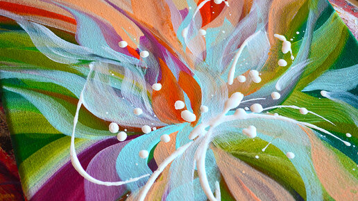 Ботаническая абстрактная интерьерная картина акрилом.