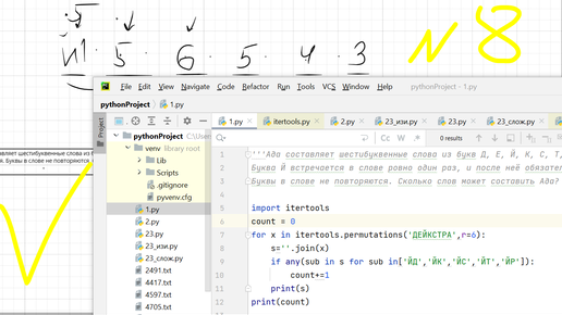 Разбираем двумя способами хорошую задачу про Аду автора А. Кукановой, что составляет слова из пула 'ДЕЙКСТРА'. Аналитикой и с помощью Python