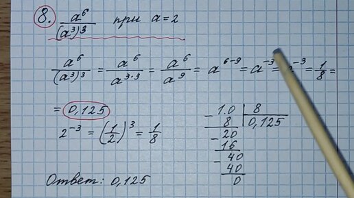 8) Найдите значение выражения а^6/(а^3)^3 при а=2. ОГЭ по математике 2023. Канал Математика бесплатно.