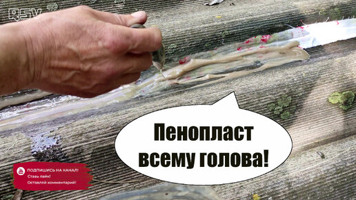 Чтоб не текла крыша, заклеили шифер пенопластом!