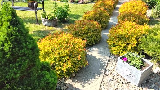 Спирея на Ножке в Виде Деревца, и Другие Кустарники в Садовой Парикмахерской. Формирование Кустарников