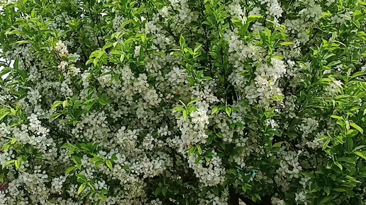 Дома и цветущие деревья на ул. Пионерской в ст. Тбилисской Краснодарского края