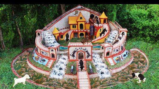 Строительство королевского дворца для щенков и аквариум вокруг дворца с искусственным водопадом