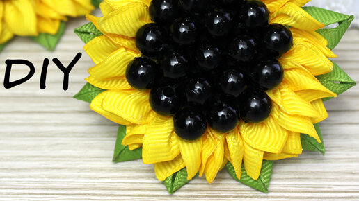 Вот и лето пришло, пора делать много цветов. Подсолнух из лент и бусин