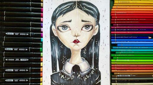 Как нарисовать Wednesday в мультяшном стиле. Рисование маркерами.
