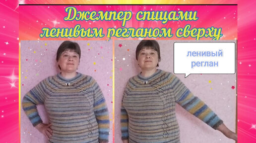 🌸Джемпер УЮТНЫЙ спицами регланом сверху из секционно-окрашенной пряжи. Обзор.🌸