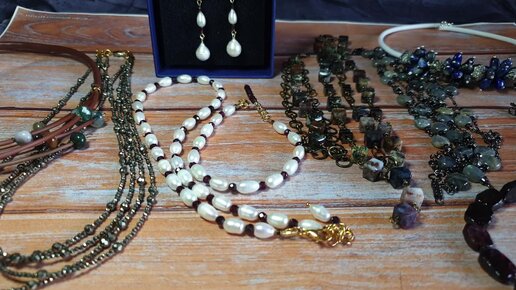 Гранат, петерсит, лабрадор, пирит. Готовые украшения.