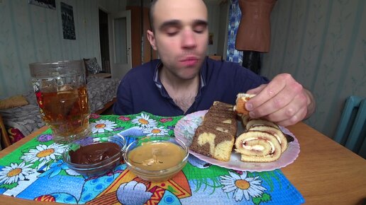 МУКБАНГ АСМР РУЛЕТ БИСКВИТНЫЙ / КЕКС / ПАСТА / ШОКОЛАД / CHOCOLATE / SWEET / EATING ASMR Mukbang #553