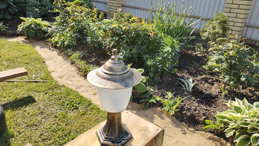 Сад 2 июня 2023г. Фонари для цветников, порог у беседки и нежная ясколка.
