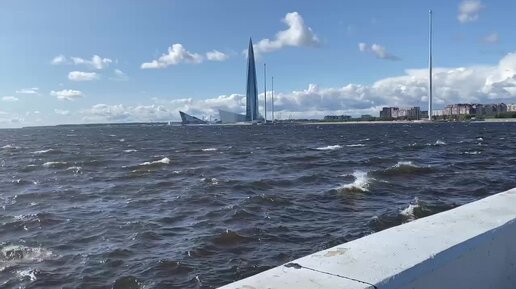 Вид на залив около метро "Зенит" , рядом со стадионом "Зенит Арена". Санкт - Петербург, 2 июня 2023