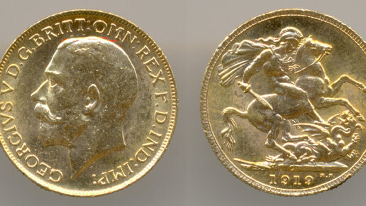 Нумизматика. Золотая монета. Канада, соверен 1919 года.