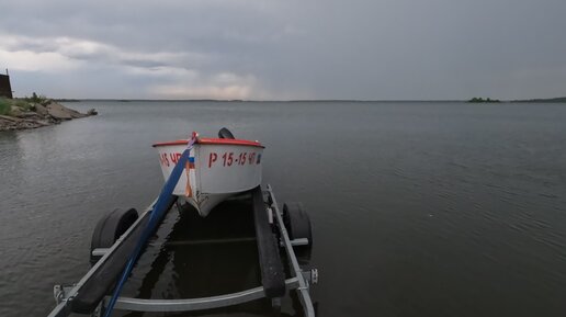 Поднимаю моторную лодку на прицеп, мелководье