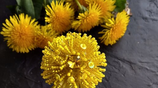 Как сделать брошь "Одуванчик жёлтый" из бисера (мастер-класс). Видео