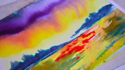 Красивое сочетание цветов, рисую пейзаж чудо-краской.