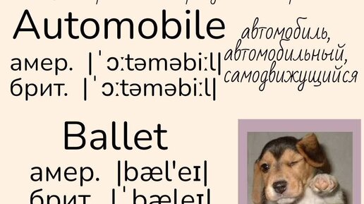 Commonly mispronounced words/слова, которые часто произносят неправильно 👉automobile, ballet, buffet, chaos 👇Примеры👇