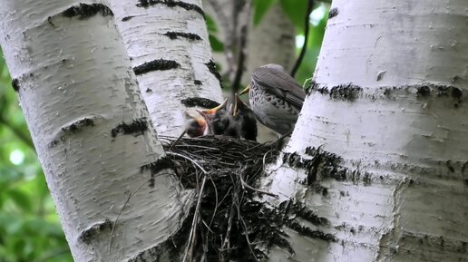 ДРОЗД РЯБИННИК , ПТЕНЦЫ В ГНЕЗДЕ