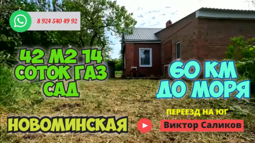 🌴Продан дом с газом 42м2/ 14 соток/ Сад/ Огород/ Вода/ Асфальт/ 1 100 000 р./ ст. Новоминская