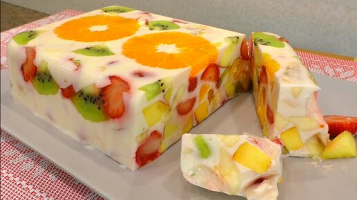 Только молоко, сметана и фрукты, самый вкусный и полезный десерт без желатина и без выпечки.