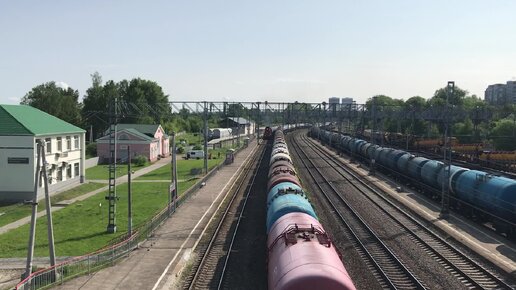 Тепловоз ТЭМ14-0011 с грузовым поездом и электровоз ЭП2К с пассажирскими поездом
