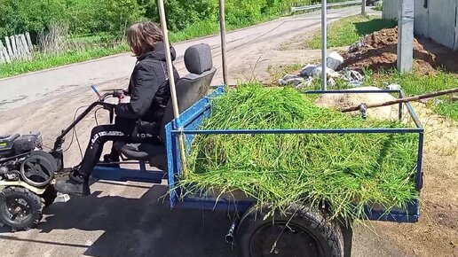 Дочка на мотоблоке. Первый заезд.