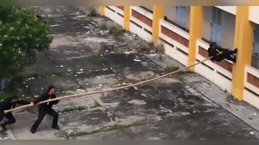 Вьетнамская тактическая группа использует бамбуковый шест, чтобы взобраться на стену