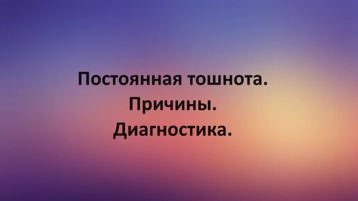 Постоянная тошнота. Причины. Диагностика.