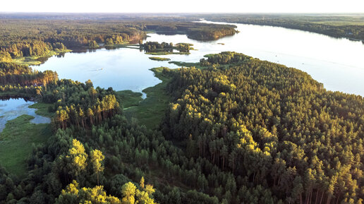 Полет над Волгой и лесами в Тверской области, в районе города Кимры