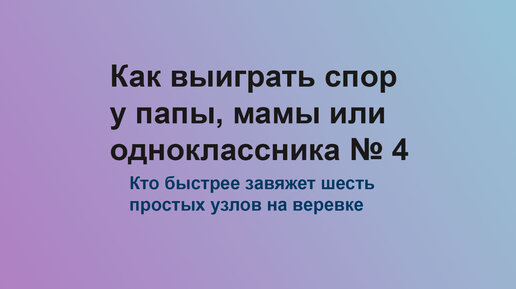 Как выиграть спор у папы, мамы или одноклассника (№ 4): кто быстрее завяжет 6 простых узлов на веревке (полезное умение)