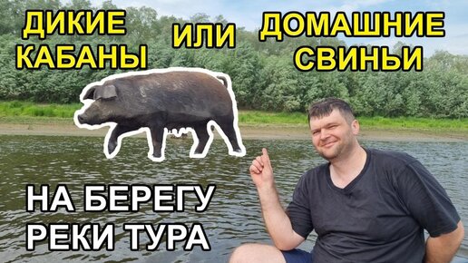 Дикие кабаны или домашние свиньи вышли на берег реки Тура