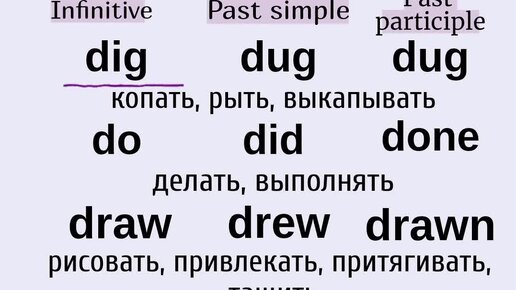 Неправильные глаголы👉dig, do, draw, dream