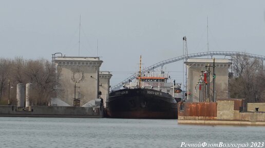 Теплоход Волго-Дон 181 проходит шлюзование во 2м шлюзу ВДСК
