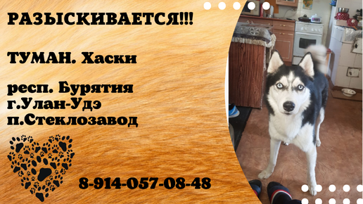 Пропала собака ! ТУМАН , респ. Бурятия , г. Улан-Удэ