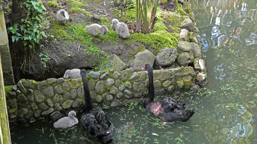 Далее: Заботливая мамочка - черная лебедь! После прогулки всем птенцам от нее ласка и внимание! Сочинский дендрарий.